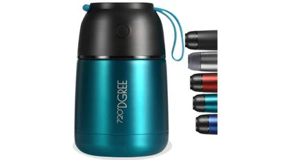 Un clásico dentro de los clásicos de oficina para almacenar todo tipo de recetas donde la cuchara sea la protagonista: ya sean purés o sopas. A la venta en cinco colores diferentes y dos tamaños (450 y 650 ml), emplea acero inoxidable como material para hacerle frente a la oxidación. Su tecnología de doble pared mantiene las recetas frías 16 horas y calientes durante una jornada laboral completa. La boca de cierre es ancho, por lo que podremos verter los líquidos sin esfuerzo y la tapa se pueda usar a modo de taza.
