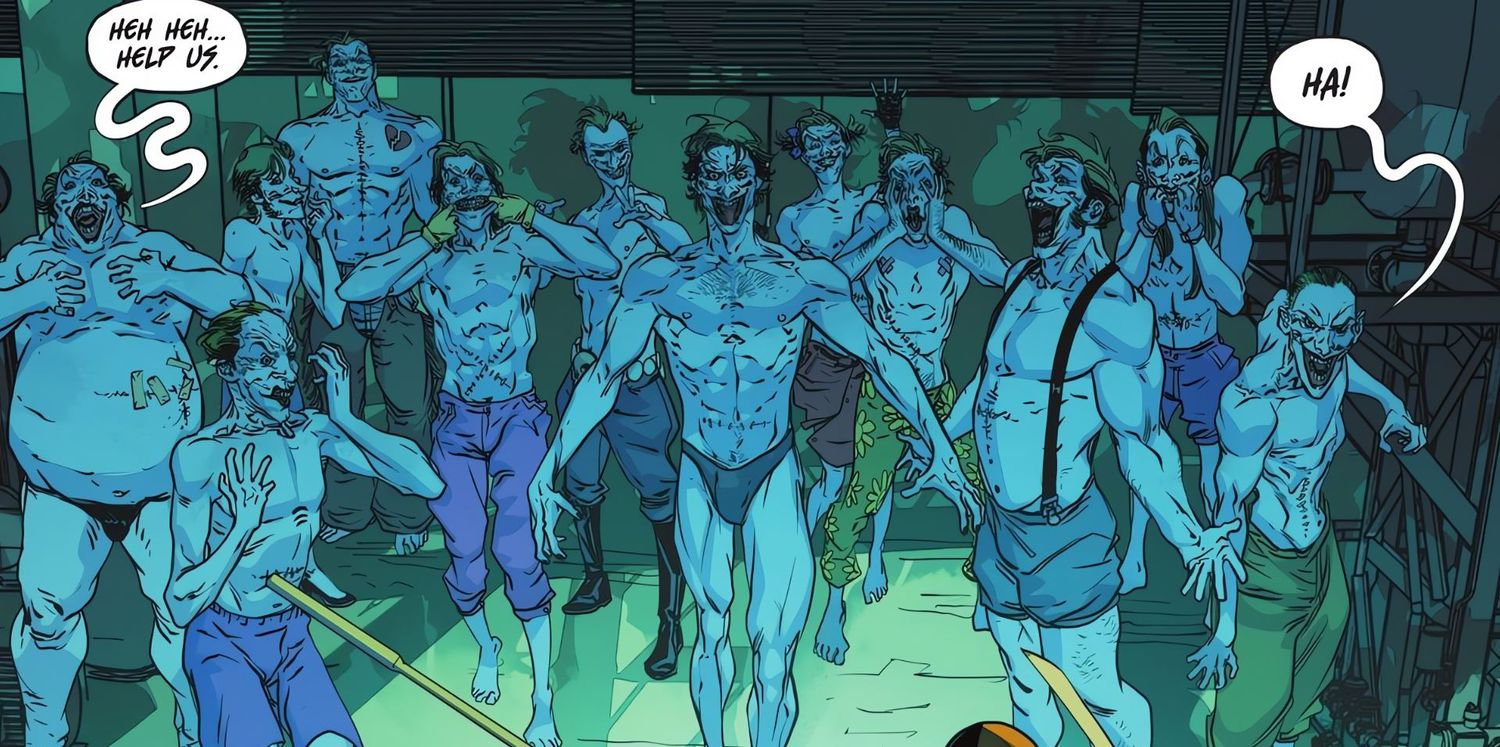 Desde la publicación de la miniserie Black Label Tres comodines, las copias del icónico villano se han convertido en una visión cada vez más común. DC incluso ha presentado un nuevo villano conocido como Red Mask que puede crear Jokers a su antojo. Sin embargo, el último lote de payasos no parece pretender ser nada más que una carta de triunfo para el Joker de Gotham. Usó un doble para atacar al Joker de Los Ángeles y experimentó renuencia a usar a sus víctimas en Ravager y Manhunter. El Joker de Gotham probablemente quería eliminar a su imitador de la manera más irónica posible matándolo con otros Jokers falsos.