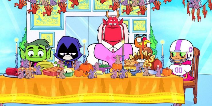 Titanes adolescentes ha pasado por un par de cambios de programa a lo largo de los años. El show animado ¡Los jóvenes titanes van! tuvo su propio especial de Acción de Gracias en 2014. Simplemente titulado, “Acción de Gracias”, el episodio tiene un visitante inesperado para cenar.