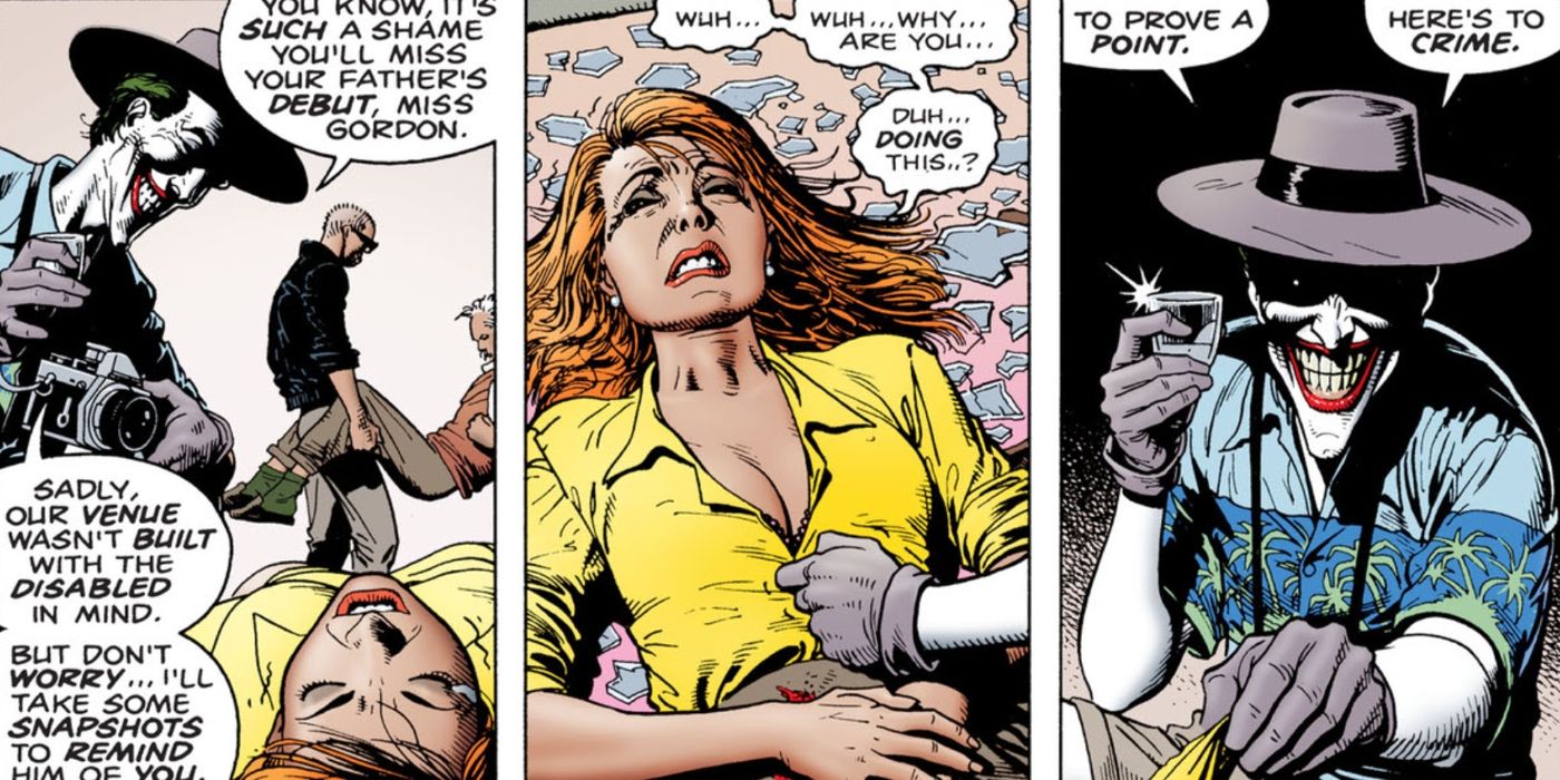 Para justificar sus acciones, el Joker simplemente dice: “Por el crimen”, después de disparar y paralizar a Barbara Gordon.