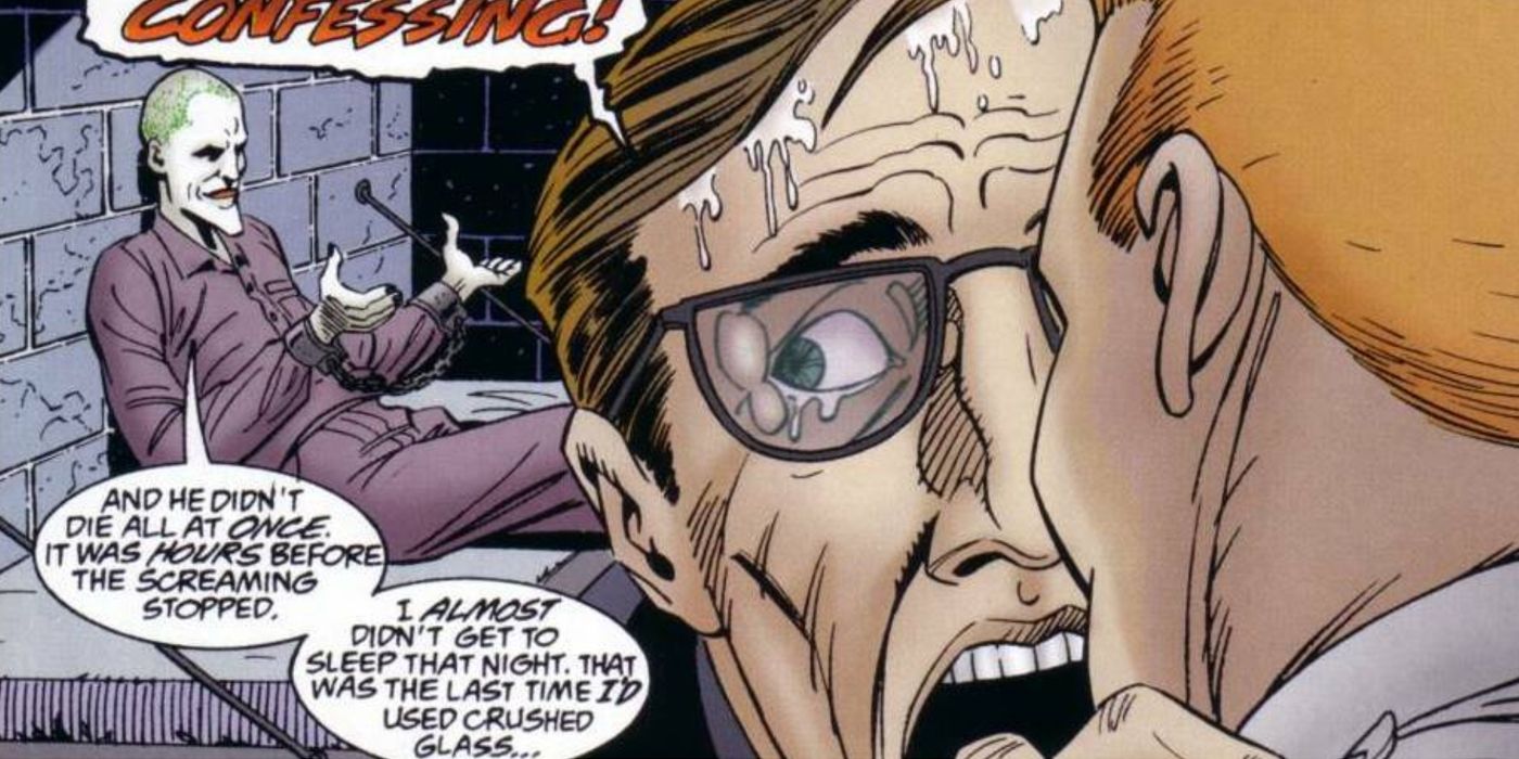 La confesión del Joker sobre el uso de vidrio triturado y los prolongados gritos de su víctima dan una idea de los horrores de los que es responsable.
