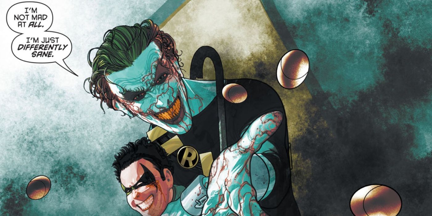 En Batman y Robin #14 de Grant Morrison y Frazer Irving, Damian Wayne acaba de ser envenenado por el Joker. El villano le dice al petrificado Robin: “No estoy enojado en absoluto. Simplemente estoy diferentemente cuerdo.”Mientras secuestra al niño y se escapa audazmente. Esta línea captura de manera excelente el retorcido punto de vista del Joker y plantea la idea de que, en su opinión, él es la única persona cuerda en un mundo loco.