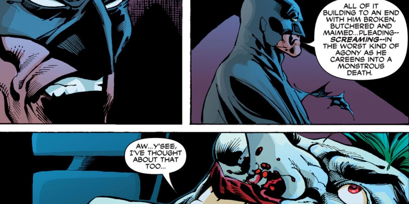 Batman reveló lo mucho que quiere castigar al Joker por sus horribles actos en Batman #650 por Judd Winick y Eric Battle. Después de escuchar la tortura que Batman quiere infligir al Joker, el villano responde “Ah, verás, yo también he pensado en eso.”. El Joker vive para corromper, y nada haría más felices sus momentos finales que saber que finalmente logró que Batman rompiera su regla de no matar.