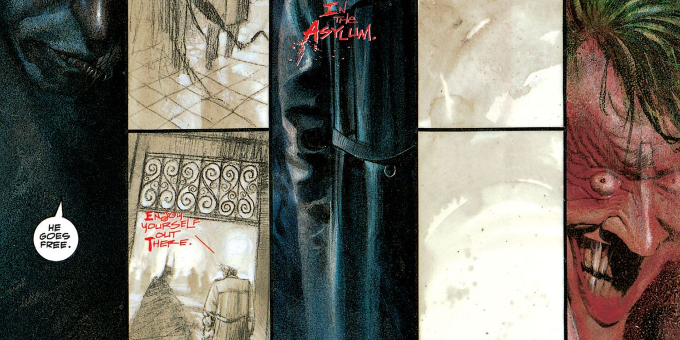 Joker no se anda con rodeos con Batman en Arkham Asylum: una casa seria en una tierra seria por Grant Morrison y Dave McKean. Cuando el Caballero de la Noche abandona las instalaciones, el Joker le recuerda “No lo olvides, si alguna vez se pone demasiado difícil… siempre hay un lugar para ti aquí.”. El Joker sabe que él y Batman viven en el mismo reino retorcido, y la espeluznante invitación revela cuánto empatiza el Joker con su mayor enemigo.
