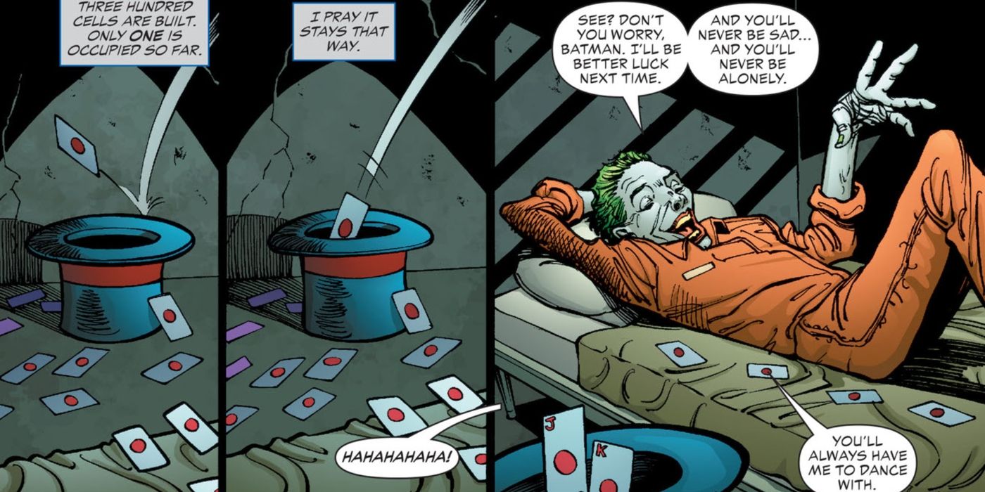 El Joker sabe que él y Batman son dos caras de la misma moneda. En Batman: Confidencial #12 Por Michael Green y Denys Cowan, Batman tiene a Joker colocado en Arkham. Mientras Batman escucha al Joker desde lejos, el villano le recuerda a su enemigo”…nunca estarás triste y nunca estarás solo. Siempre me tendrás para bailar.”. Joker sabe que pase lo que pase, él y Batman están eternamente unidos el uno al otro.