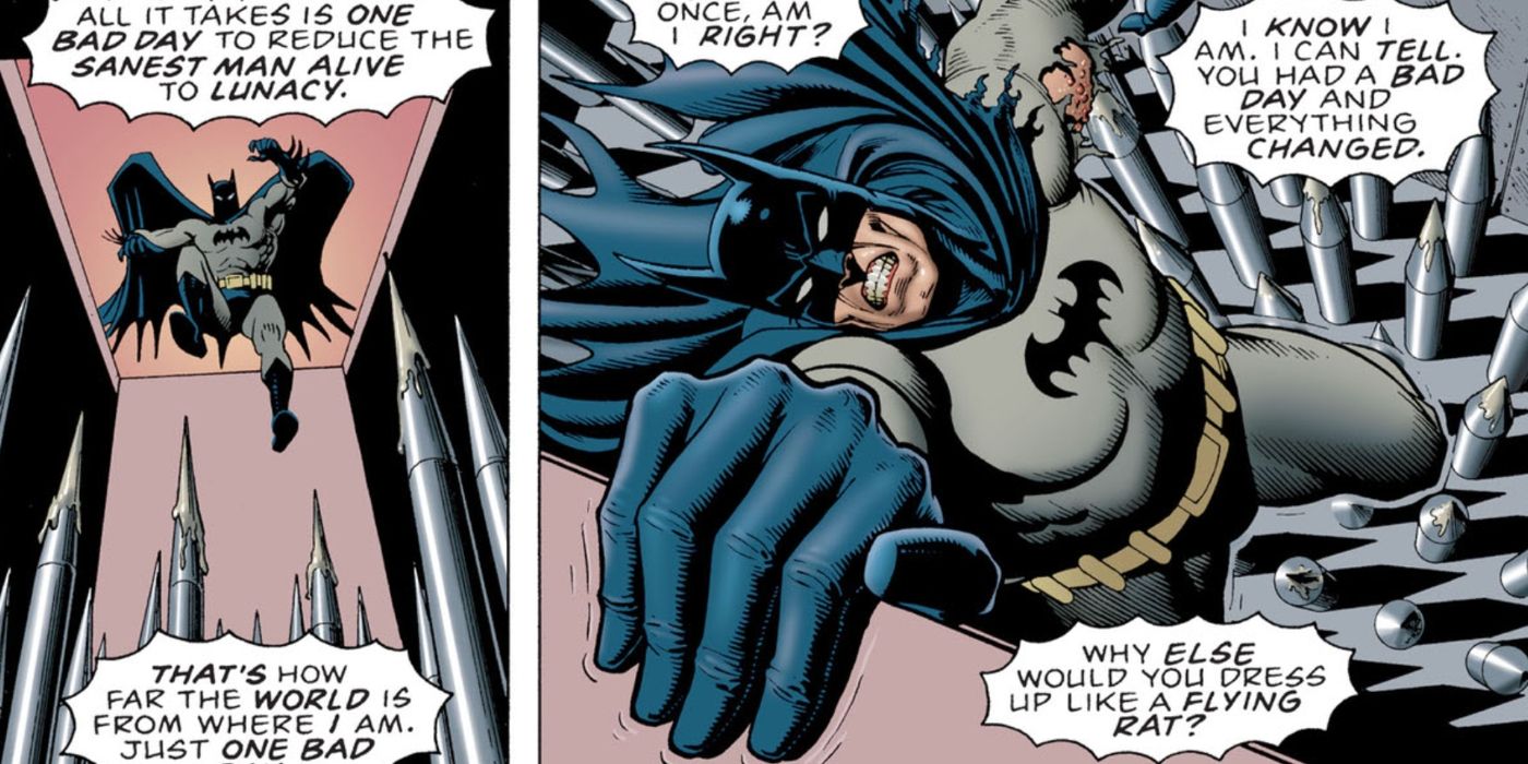 Es la tesis definitiva del Joker y algo que los fanáticos saben de memoria. En el clímax del discurso de Moore y Bolland El chiste asesinoel villano le dice a Batman que “Todo lo que se necesita es un mal día para reducir a la locura al hombre más cuerdo del mundo.”. Si bien el plan del Joker no logra romper con la Comisión Gordon, es escalofriante que el Joker crea seriamente que otros son tan capaces de cometer la misma depravación que él.