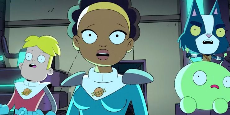 Espacio final es una serie animada de ciencia ficción más nueva que tiene lugar principalmente en el espacio, como sugiere el título. Sigue a un astronauta llamado Gary que está cumpliendo una sentencia de prisión cuando se encuentra con un extraterrestre llamado Mooncake que está siendo rastreado para que los poderes de Mooncake puedan usarse para el mal.
