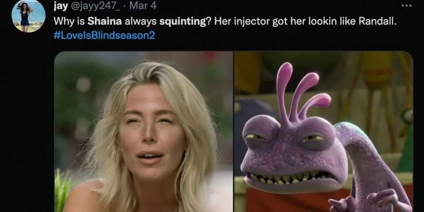 Shaina Hurley era muy impopular en El amor es ciego temporada 2 por su tenaz búsqueda de Shayne Jansen y su compromiso tremendamente inadecuado con Kyle Abrams mezclado con su extraño sistema de creencias. En la reunión, parecía que no podía mantener los ojos abiertos. Si bien ella afirma que fue debido a sus contactos, surgieron muchos memes sobre su constante entrecerrar los ojos.