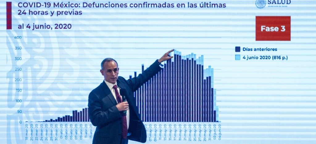 El número o punto máximo de muertes por Covid-19 en México que se han registrado en 24 horas ha sido de 340 defunciones, las cuales ocurrieron el pasado 17 de mayo, informó el subsecretario de Prevención y Promoción de la Salud, Hugo López-Gatell.