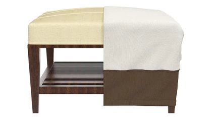 Al igual que la anterior, esta funda bicolor (marrón en la parte baja y tonos crema por la parte de arriba), es ideal para cubrir como se merece la mesa del comedor del patio o la terraza. El tejido utilizado es poliéster y es muy fácil de limpiar: con solo pasar un paño húmedo bastaría. Sirve para mobiliario que no sobrepase las medidas de 180 x 67 cm.