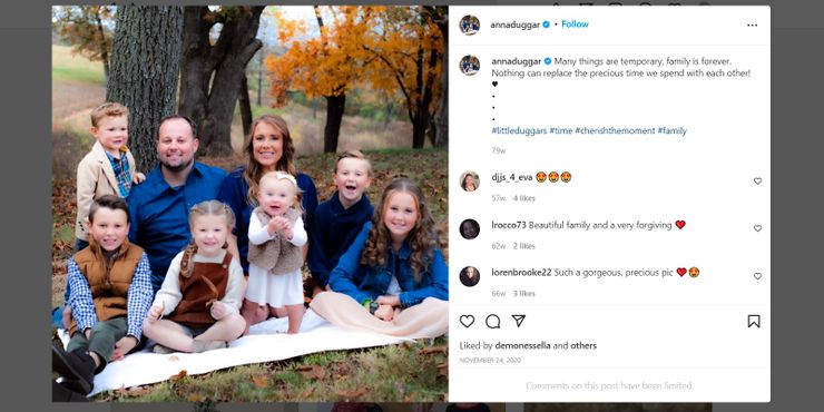 los 19 niños y contando star fue sentenciado el 25 de mayo. A Josh se le ordenó regresar a la Cárcel del Condado, donde está esperando su traslado a una prisión federal. A Josh también se le ordenó pagar una multa de $50,000 y no se le permite tener visitas sin supervisión con sus hijos. Los espectadores esperan que Anna salga de su mentalidad y decida dejar atrás a su pareja.