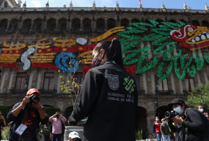 La jefa de Gobierno de Ciudad de México, Claudia Sheinbaum Pardo, durante el megasimulacro en el Zócalo.