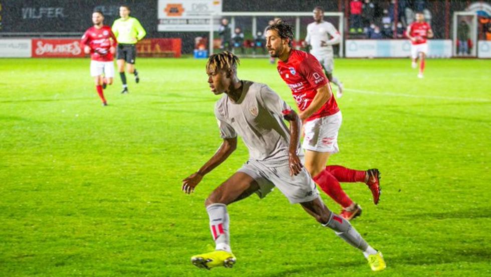 Williams la tuvo nada más iniciarse el segundo periodo, sin embargo se topó con Puras. La madera libró por dos veces al Bilbao Athletic. La primera en un libre directo de Riki que estrelló en el larguero. El terreno de juego aguantó bien a pesar de la intensa tromba que cayó durante la tarde, aunque se fue poniendo pesado con el paso de los minutos.