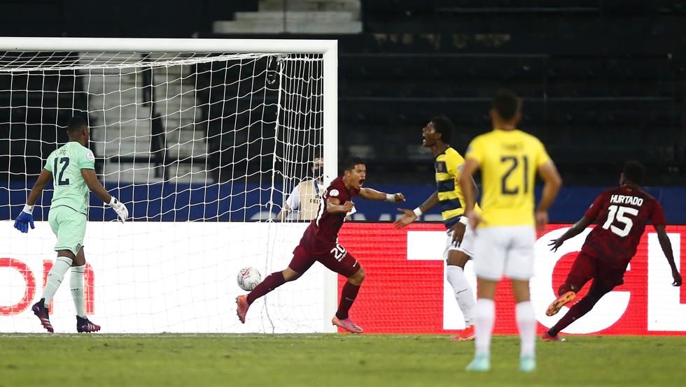 Cuando Venezuela jugaba sus mejores minutos en el torneo y tenía a Ecuador encerrada en defensa, Gonzalo Plata alcanzó un balón tras un córner de la Vinotinto que olía a gol.