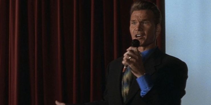 Patrick Swayze tiene un pequeño papel secundario en la película como un gurú local de autoayuda que luego se revela como una persona bastante despreciable. Sin embargo, hubo indicios de su tortuosidad al principio de la película que los fanáticos podrían no haber notado. Cuando Cunningham visita la escuela de Donnie para dar una conferencia, un niño pequeño le hace una pregunta a la audiencia. Sin embargo, el mismo niño fue visto anteriormente en uno de los videos de autoayuda de Cunningham, lo que sugiere que colocó actores en la audiencia para verse mejor.