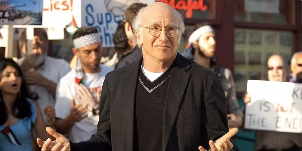 Larry David redujo las complejidades del conflicto entre Israel y Palestina a un nuevo restaurante de pollo de moda en Los Ángeles en Frena tu entusiasmoEpisodio de la octava temporada “Pollo palestino”. Larry tiene que sopesar su identidad judía con lo mucho que le gusta el pollo de los chefs palestinos. Es un ejemplo perfecto de FrenarEl estilo único de sátira.