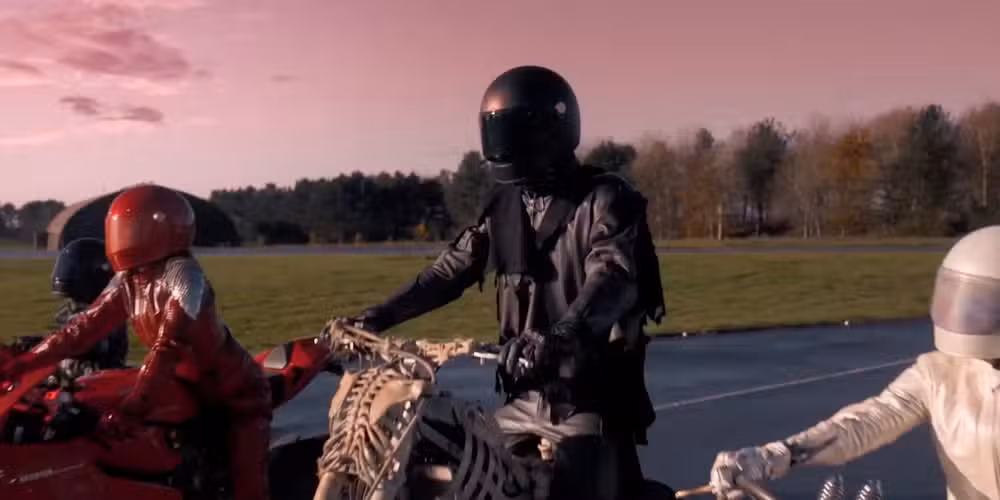 Buenos presagios‘La versión de los cuatro jinetes del Apocalipsis es uno de los más creativos de todos los tiempos, y los personajes amenazan a pesar de que el programa es en su mayoría comedia. El corresponsal de guerra (guerra), el empresario (hambruna), el ser (contaminación) de otro mundo, y la muerte, los jinetes modernos, que responden a nadie y roban la escena cada vez que aparecen en la pantalla.