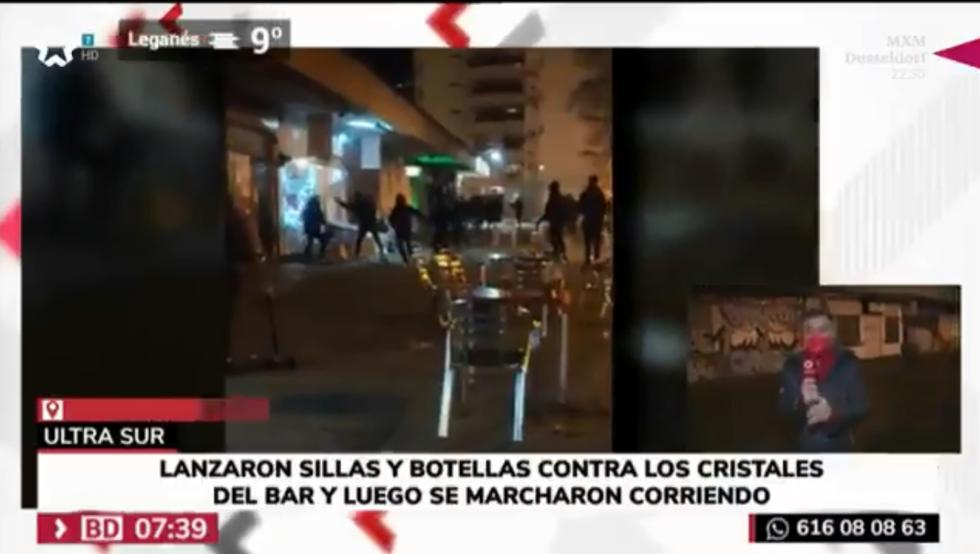Lanzaron sillas y botellas contra los cristales de bar y luego se marcharon corriendo. #BDMadrid @BuenosDiasTM