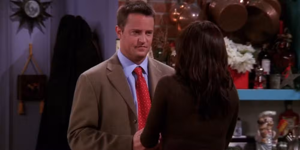 Cada vez que volvemos a ver esta escena de “El de la rutina”, recordamos la desgarradora pérdida del actor Matthew Perry, quien interpretó a Chandler Bing durante todo el proceso. Amigos. Tan pronto como Monica ha expresado la importancia de estar con las personas que amas en Navidad, la cámara enfoca a Joey, Phoebe, Rachel y Chandler.