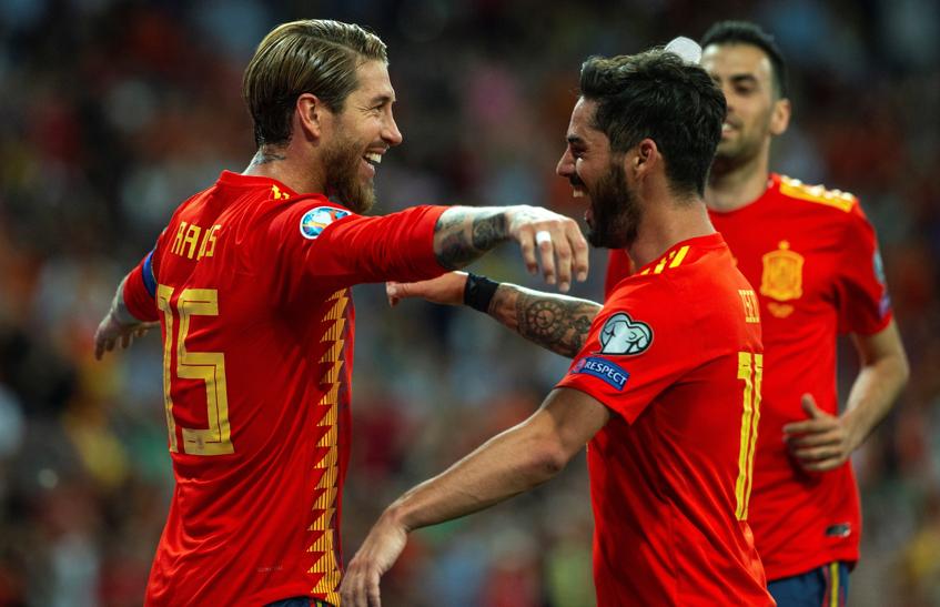 Incidencias: encuentro de la cuarta jornada de la fase de clasificación a la Eurocopa 2020 disputado en el estadio Santiago Bernabéu ante 72.205 espectadores. Se guardó un minuto de silencio en memoria del exjugador internacional español José Antonio Reyes y el expresidente de la UEFA Lennart Johansson. Ramos fue homenajeado por su récord de victorias con la selección.