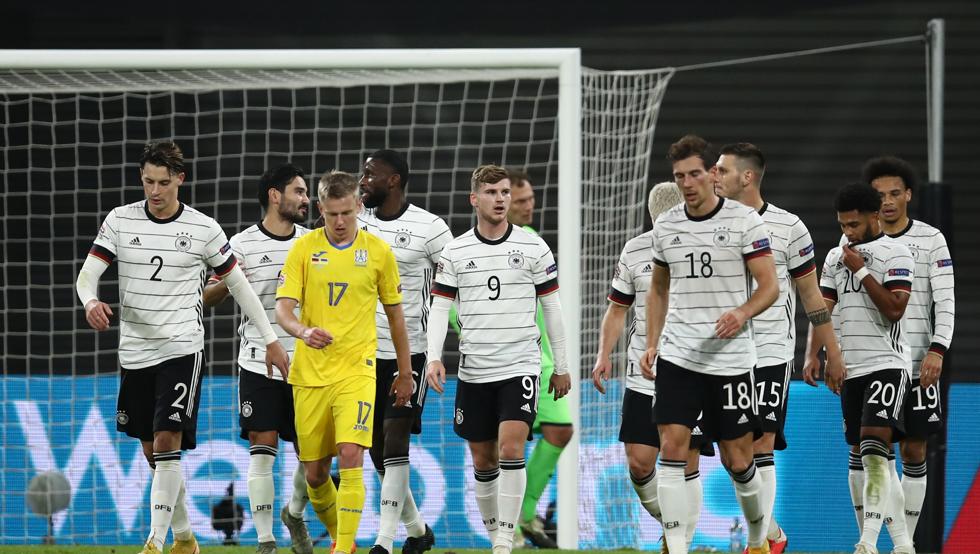 Sin la templanza de Toni Kroos en la sala de máquinas, el carácter caótico e impredecible del ataque germano se acentúa todavía más porque son Werner, Sané y Gnabry los que marcan el tempo con sus desmarques e intercambios constantes de posición. El golazo de Yaremchuk en el minuto 12 tras una concatenación de indecisiones de la zaga local no cambió ni un ápice el guion del choque, dominado de cabo a rabo por Alemania.