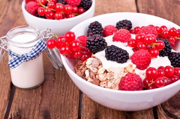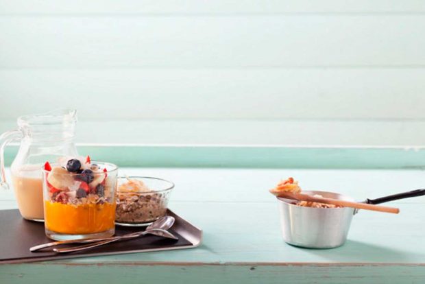 Este es uno de nuestros desayunos favoritos para comenzar las mañanas de verano. Imagínate en el balcón de una terraza con el mar al fondo mientras le das a tu cuerpo los nutrientes que necesita a primera hora de la mañana. Estos son proteínas, hidratos, grasas saludables, vitaminas, minerales y fibra. Todo contiene un tazón de yogur (o kéfir) natural con frutos rojos (frambuesas, arándanos, grosellas…). Un truco para que sea todavía más refrescante es guardar en el congelador la fruta durante 15-20 minutos antes de prepararlo. ¡Delicioso!