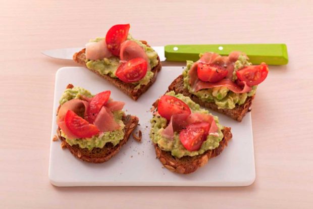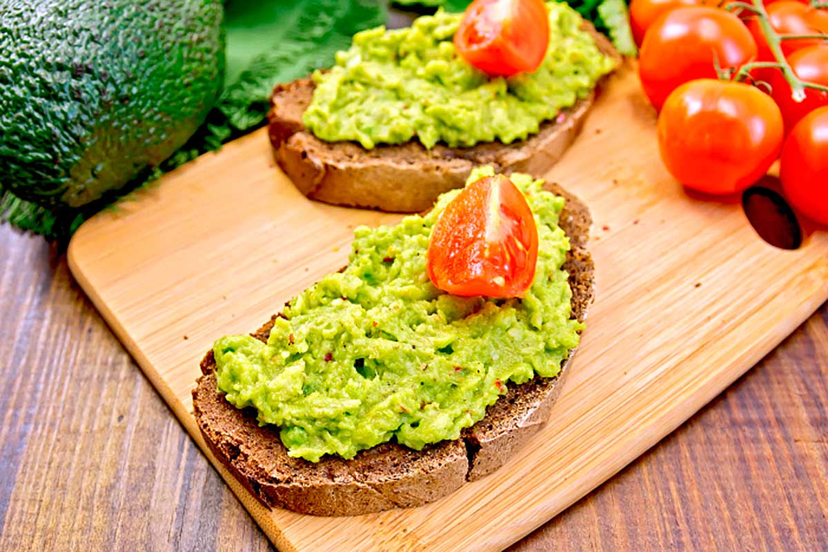 Como acompañamiento del pan (tostado o al natural) te proponemos aguacate en forma de guacamole. Esto te aportará ácidos grasos esenciales. Prueba a poner tomate cherry encima o bien un huevo a la plancha con la yema poco hecha. La explosión de sabor no tiene parangón. Otra opción es sustituir el huevo por pavo o jamón serrano.