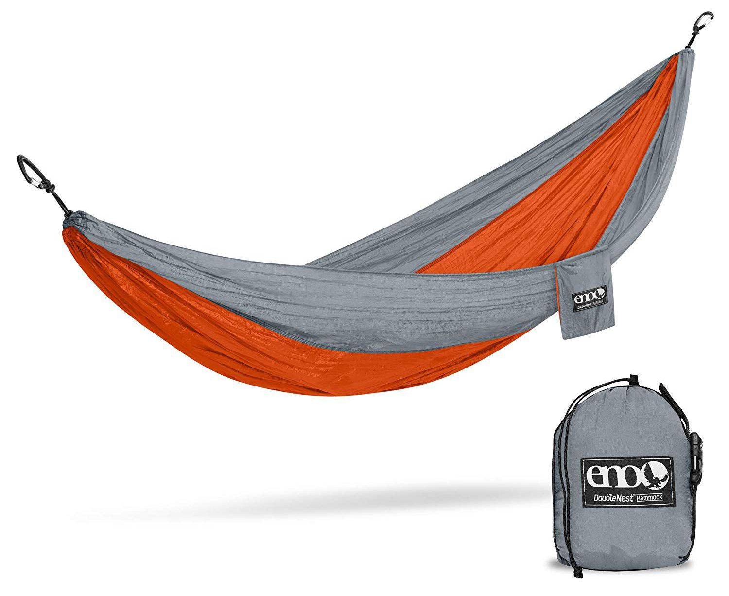 Para los tipos a los que les gusta dormir una siesta, considere esta hamaca portátil DoubleNest de Eagles Nest Outfitters. Hecho de tafetán de nylon ligero y de alta tenacidad, el Doublenest se empaca en una bolsa de almacenamiento de 5 pulgadas por 5 pulgadas cosida en la hamaca. Puede colocarlo en cualquier lugar con la línea de calidad náutica, los mosquetones de aluminio y los enlaces a presión de acero inoxidable incluidos.