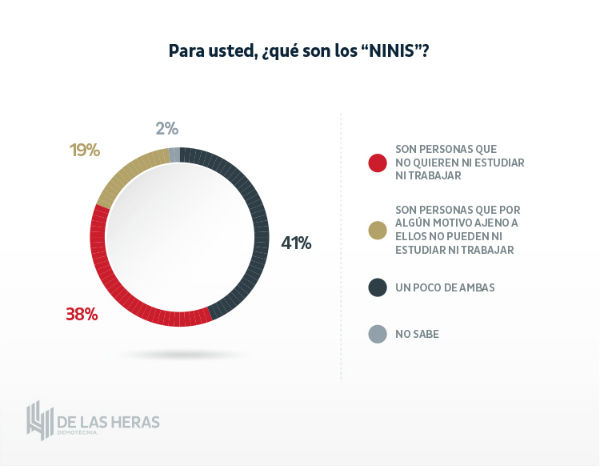 Sin embargo, el significado del término “nini” no está claro en los mexicanos, pues el 38 por ciento dijo que “son personas que no quieren ni estudiar ni trabajar“, el 19 por ciento dijo que “son personas que por algún motivo ajeno a ellos no pueden estudiar ni trabajar” y el 41 por ciento dijo que “un poco de ambas” refiriéndose a las opciones previas.