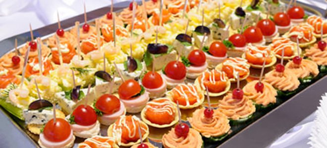 El primer paso es considerar a qué hora del día será su recepción. Una recepción matutina podría incluir desayuno, café o té; una recepción al mediodía podría tener almuerzo, té o cócteles; y una recepción nocturna podría tener casi cualquier cosa.