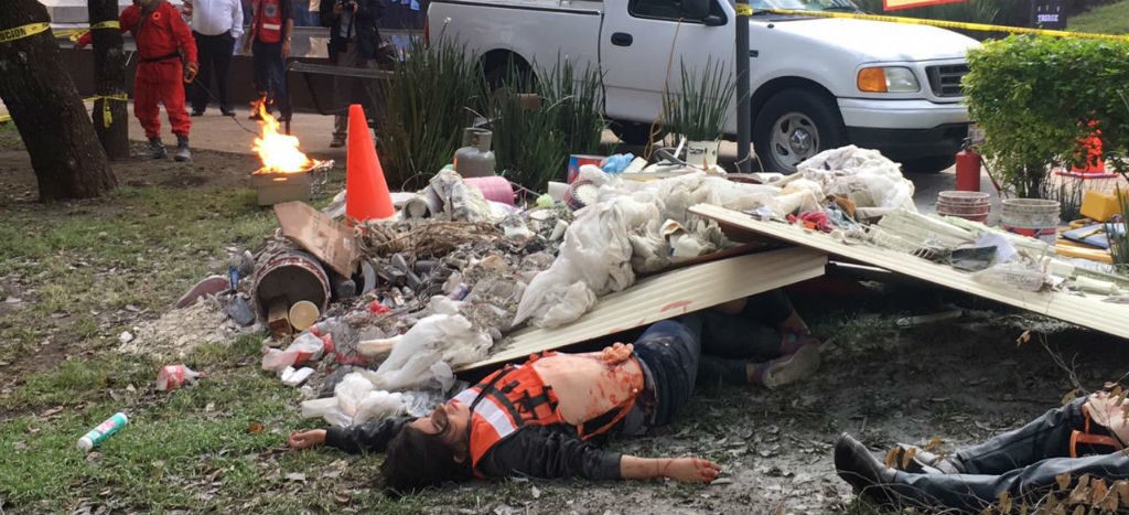 Un hecho que llamó la atención fue que en Insurgentes y Reforma se incluyó la simulación de personas heridas: