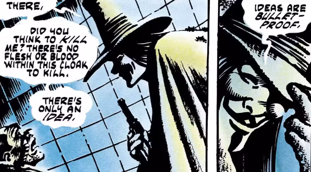 Aunque el propio Alan Moore se identifica como anarquista, no glorifica el personaje que utiliza para encarnar sus ideales. Al igual que sus enemigos, V es un reaccionario. La crueldad inhumana de Norsefire lo empuja a abrazar la anarquía. Una vez más, esto es lo que hace V de Vendetta menos un tratado político y más una tragedia ideológica.