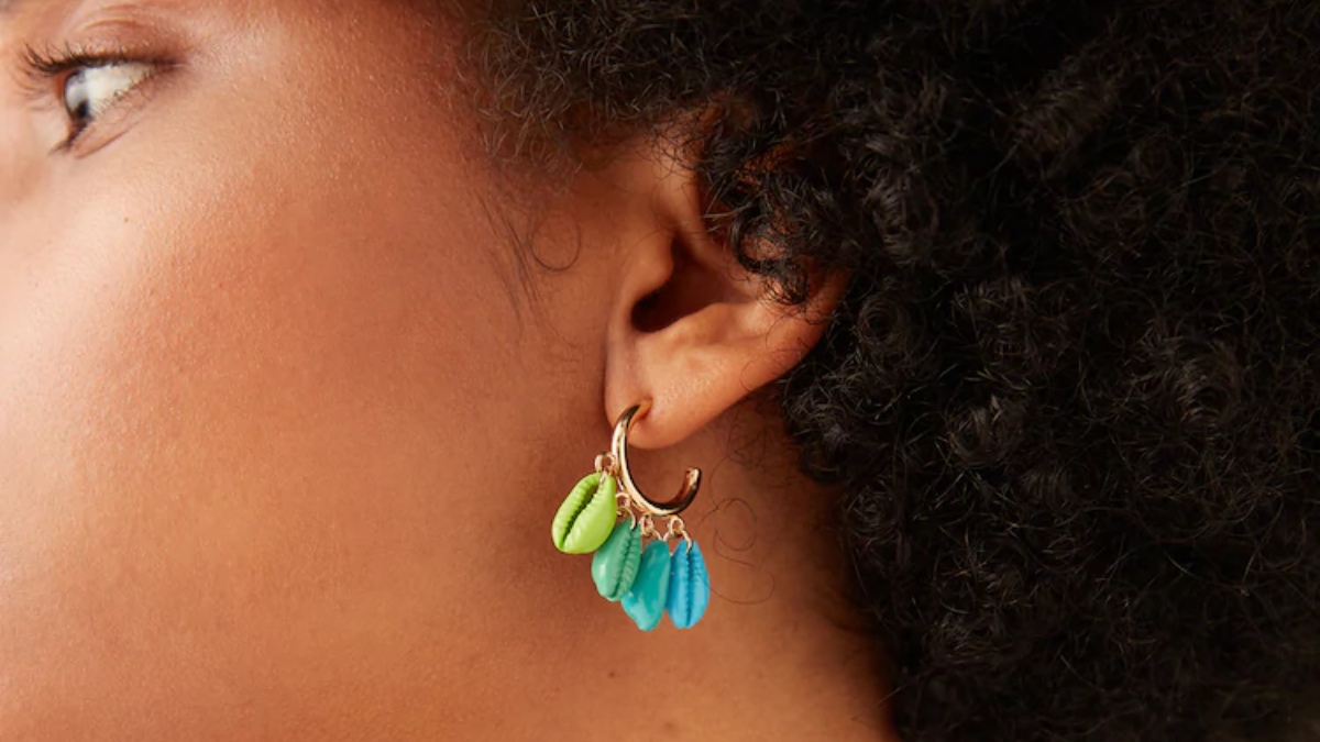 Estos pendientes tintados con conchas de mar de color azul darán vida a cualquier vestido playero. Un tipo de pendiente que llama la tención y que destaca por una tonalidad que actualiza esta tendencia natural.