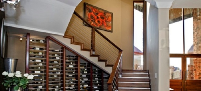 Puede tomar su botellero montado en la pared recién construido y asegurarlo debajo de la escalera. O puede personalizar algunos botelleros comprados en la tienda y crear un lugar perfecto para almacenar vino debajo de sus escaleras.