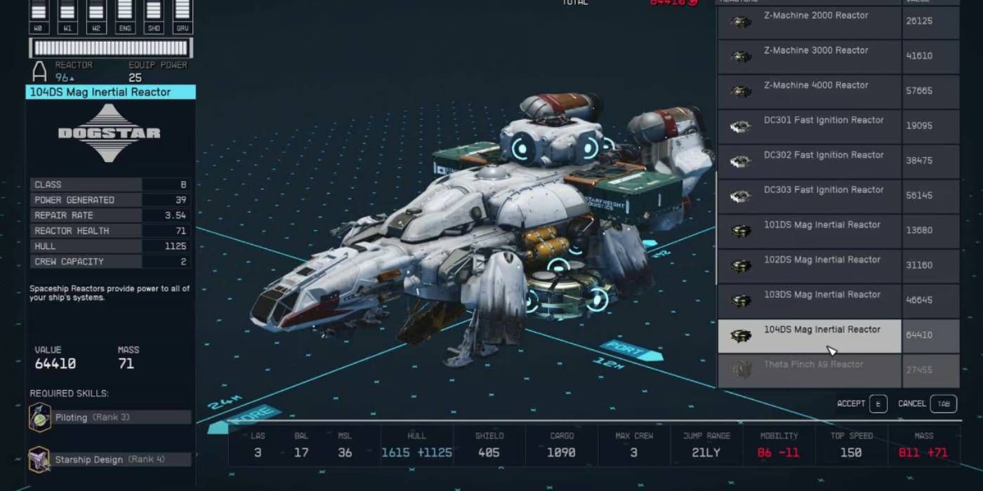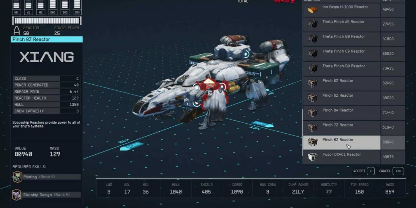 Algunos reactores no se pueden usar en un diseño de barco personalizado si no tienes un nivel lo suficientemente alto. Pilotaje o Diseño de nave estelar rango de habilidad. Algunos de los mejores fondos en campo estelar te dará rangos gratis para ambos atributos cuando crees tu personaje.