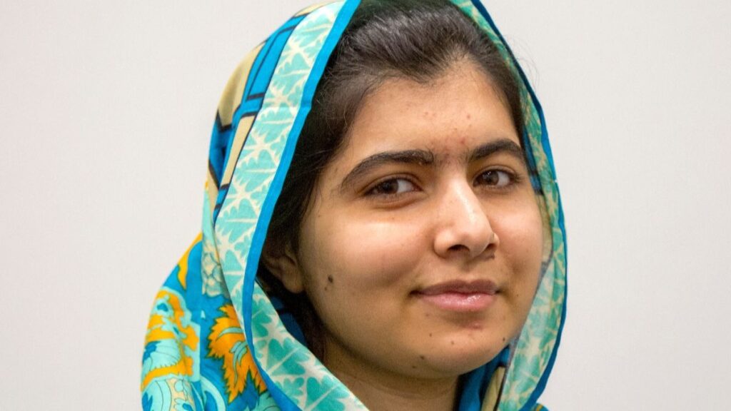 Malala Yousafzai ganó el Premio Nobel de la Paz en 2014, cuando apenas tenía 17 años de edad. Es una estudiante activista pakistaní a la que los talibanes dispararon en la cabeza por  ir a la escuela. Cuando se recuperó, se mudó junto a su familia a Reino Unido, donde creó la fundación «Malala Fund».