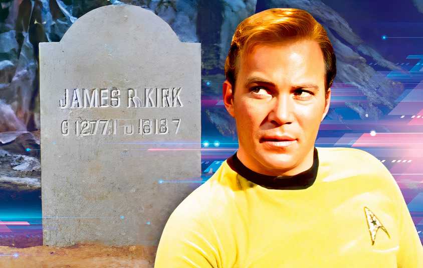 El segundo piloto de Star Trek, “Donde ningún hombre ha ido antes”, le da al Capitán James T. Kirk la errónea mediana de R en su lápida.