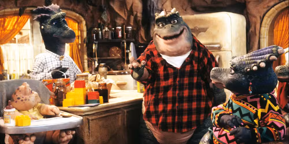 Uno de los mejores y más creativos programas de televisión de la década de 1990 es dinosaurioscreado por Michael Jacobs y Bob Young. dinosaurios lleva al público al año 60.000.000 a.C. en Pangea para seguir una familia antropomórfica de dinosaurios: padre Earl, madre Fran, hijo Robbie, hija Charlene y Baby, junto con la abuela Ethyl.