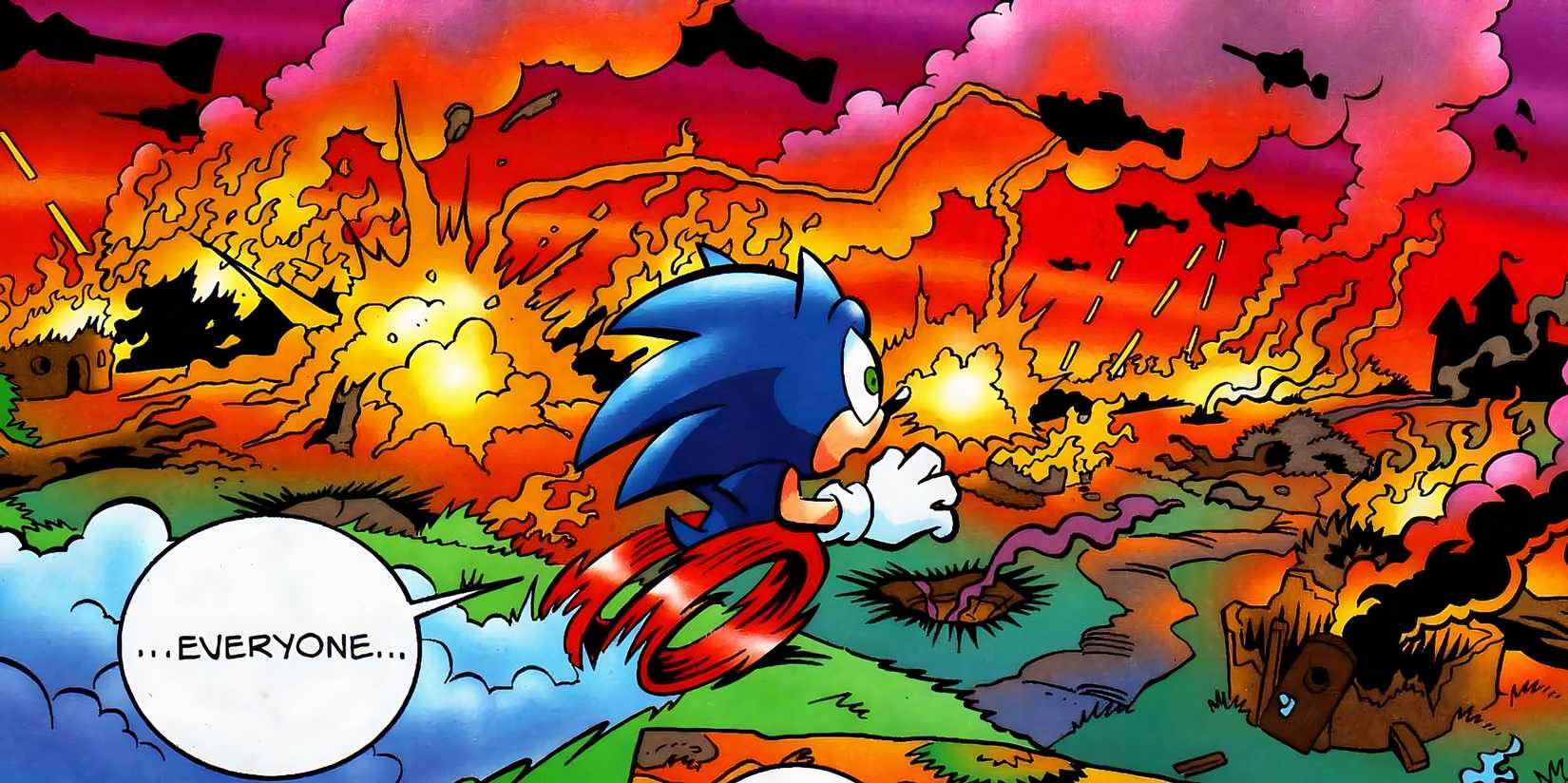 En medio de la locura hay una escena aún más triste. Amy tiene que alejar a Cream de su madre, Vanilla, mientras Vanilla es asaltada por la horda de Zombots. Rápidamente, Sonic se convirtió en la única esperanza de Central City, hasta que también se infectó y se vio obligado a correr indefinidamente para frenar la propagación del virus. A lo largo de esta historia, el puro horror que cada uno de los supervivientes debe soportar se puede ver fácilmente en sus rostros. La sensación de que, con la mayoría de sus amigos y familiares muertos o agonizantes, ellos también serán asesinados es realmente horrible. Si bien Sonic inevitablemente salvó el día, el arco terminó con toda esperanza destrozada cuando Sonic se sacrificó en una explosión cósmicasin dejar nada atrás.