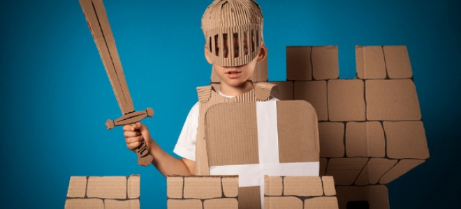 Usar un cartón resistente hará que el juguete sea más duradero, pero también puedes usar algo como tubos de toallas de papel vacíos como espadas.