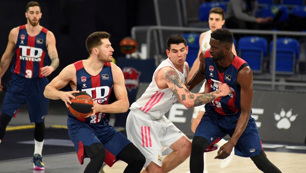 Incidencias: Partido correspondiente a la 26ª jornada de la Liga Endesa celebrado a puerta cerrada en el Palacio Municipal de los Deportes San Pablo.