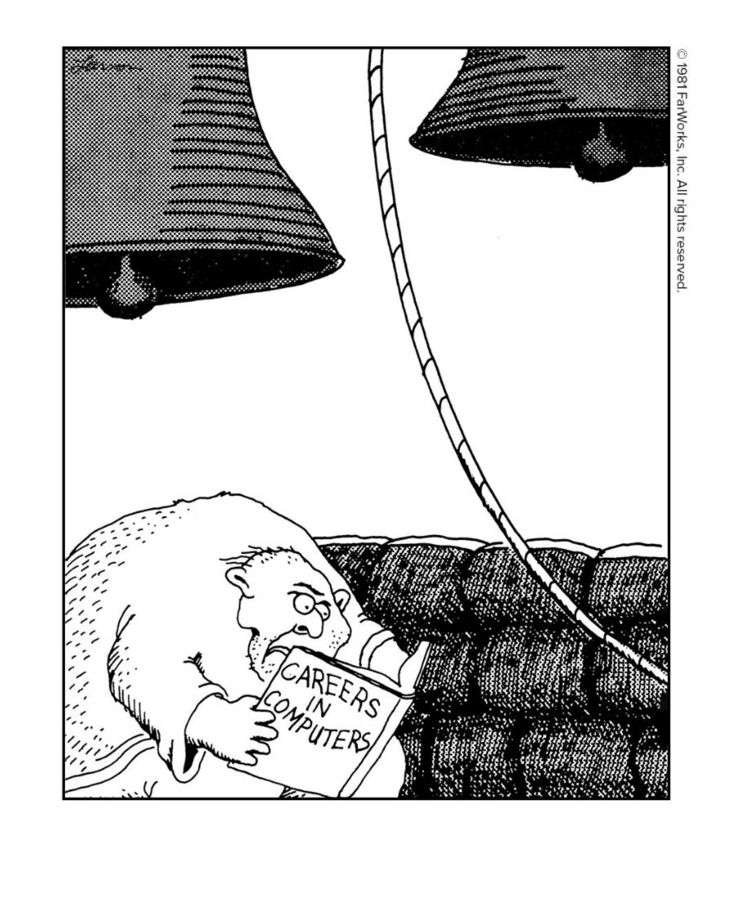 Las carreras relacionadas con la computadora se han convertido en uno de los campos más en auge y gratificantes. Dado que este cómic se publicó originalmente en 1981, es poco probable que Larson o sus lectores supieran cuán correcto era y que Ellos también deberían haber seguido el liderazgo de Quasimodo al mundo de las computadoras.