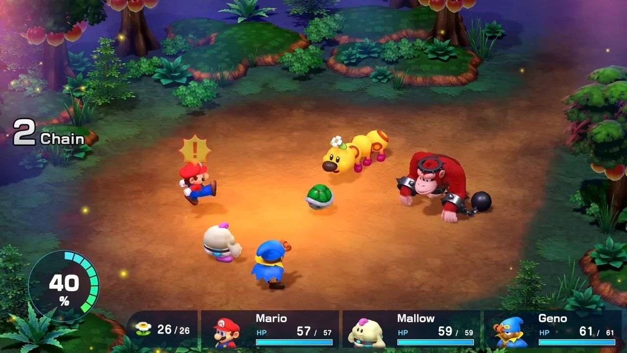 “/> Super Mario RPG ha recibido cambios nuevos y renovados respecto al original. Esto incluye ajustes al sistema de combate. La mayor diferencia es la capacidad de cambiar a otros miembros del partido y poner el resto en reserva. mario Siempre es un personaje obligatorio, por lo que todo se reduce a los otros dos. Los miembros del grupo llegan con las mismas estadísticas y puntos de vida que tenían en la retaguardia. Esto significa que los personajes caídos deberán ser revividos o protegidos con beneficios.