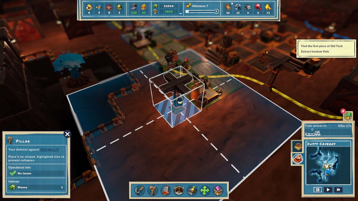 “/> La mina subterránea es tu alma para materiales raros y objetivos de la historia. Si la mina colapsara, rápidamente podría significar un desastre. Esto se puede remediar posando Pilares para evitar la inestabilidad. Por lo general, desea colocar títulos de los Pilares cuatro a seis a una distancia entre sí, dependiendo de la forma del piso de la mina. Los mosaicos de recursos más duros que no se pueden extraer, como el lecho de roca, pueden servir como muros improvisados. Pero, más adelante en el juego, es posible que puedas extraer incluso esos títulos previamente ignorados.