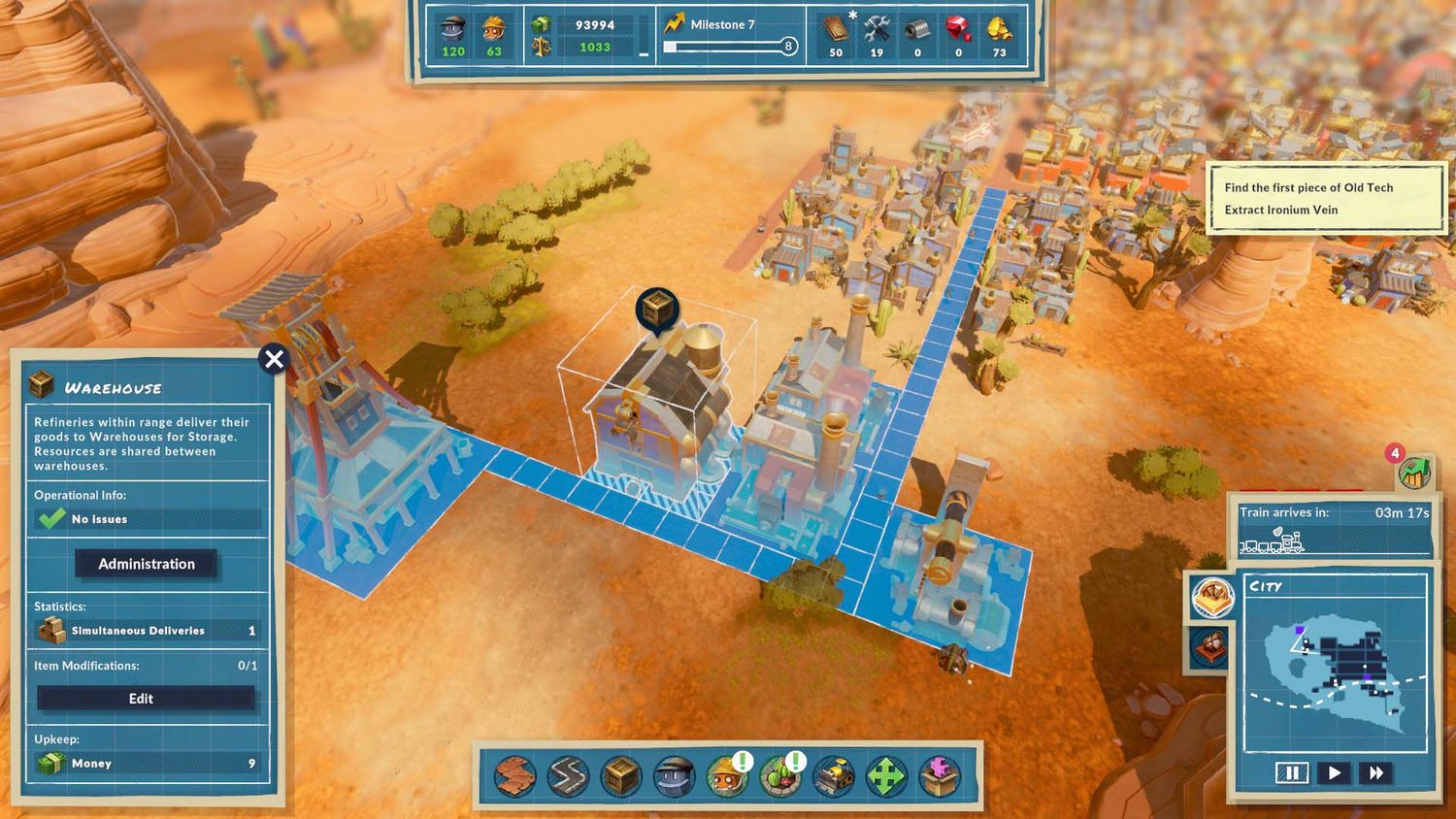 Construcción de SteamWorld Tiene tres configuraciones de velocidad: Pausa, Normaly Rápido. Se espera que utilices las tres velocidades en diferentes puntos y escenarios. La mayor parte del juego se jugará en Normal para comprender cómo fluye el trabajo en la ciudad. Sin embargo, algunos artesanos pueden tardar mucho tiempo, hasta un minuto, en producir un solo artículo. Si una tarea requiere 100 de esos recursos, es posible que desees cambiar a velocidad rápida para detener la monotonía. El YouTuber CohhCarnage pasó gran parte de su juego en modo Rápido para evitar tal situación.