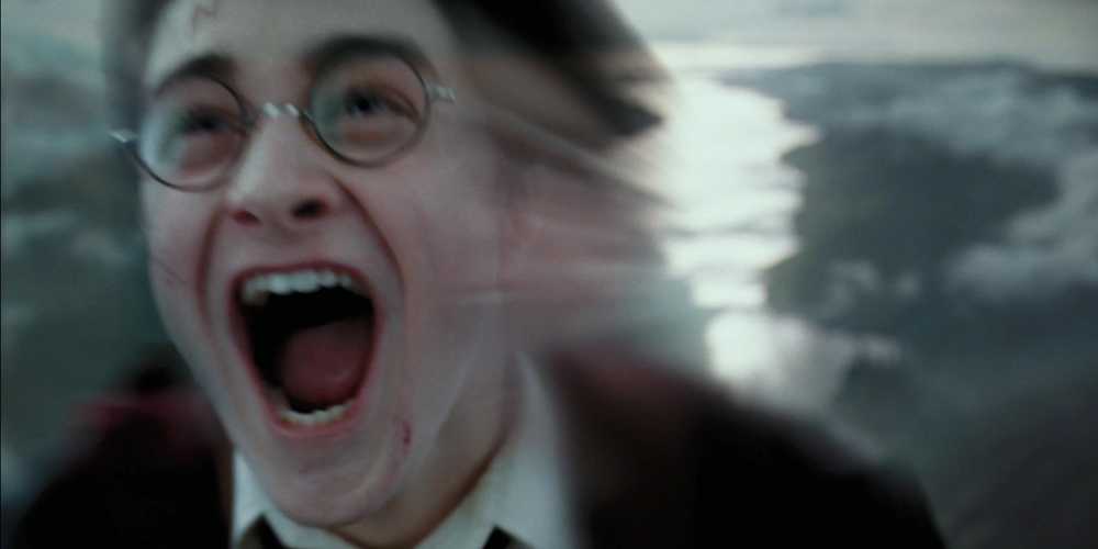 Harry pasa mucho en Prisionero de Azkaban – Desde enfrentarse a los dementes hasta aprender la verdad sobre Sirius Black, y al final de la película, Black, después de escapar con éxito de los Dementores, envía una nueva escoba de Firebolt a Harry. Harry lo monta y Prisionero de Azkaban Termina con un incómodo cler plano de la cara congelada de la cara feliz de Harry.