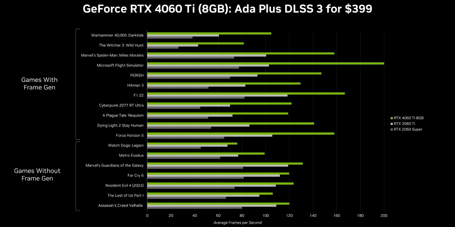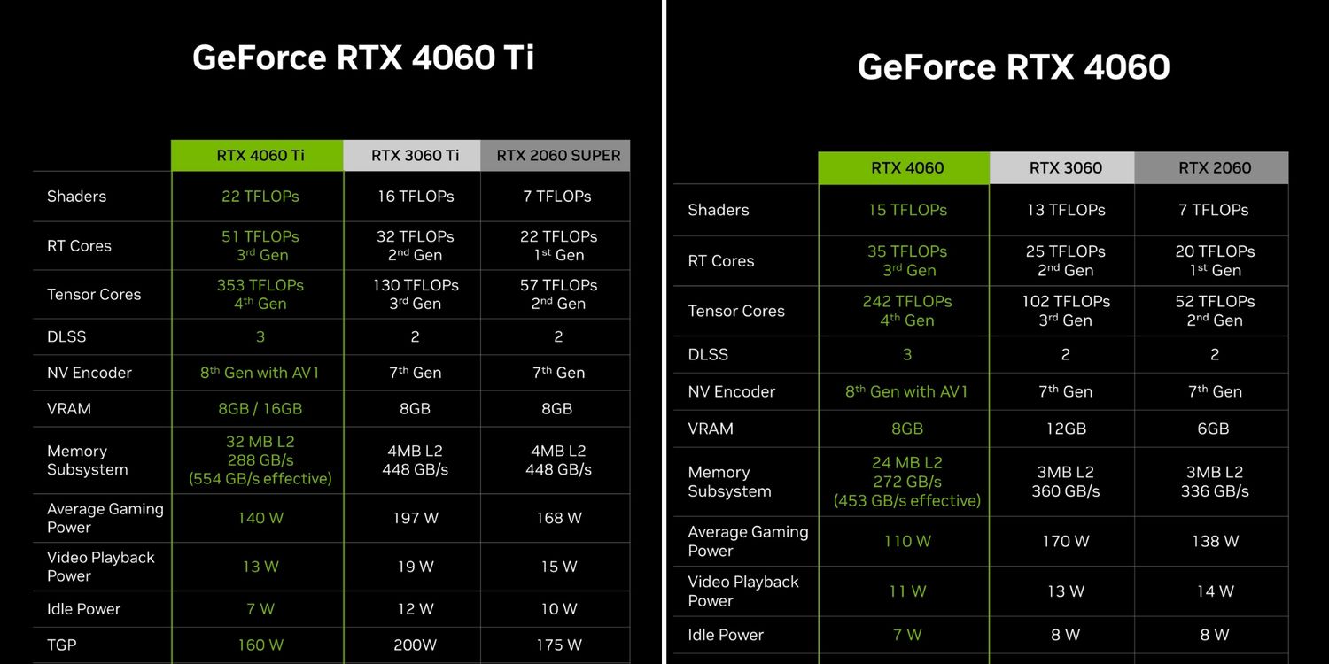En un comunicado de prensa oficial, el vicepresidente de marketing global de Nvidia GeForce, Matt Wuebbling, dice: “La familia RTX 4060 ofrece a los jugadores de PC un gran valor y un gran rendimiento a 1080p, ya sea que estén construyendo una caja de batalla de juegos o una estación de creación asistida por IA.Las asequibles RTX 4060 y 4060 Ti pueden ofrecer más de 100 fotogramas por segundo para varios títulos populares utilizando la tecnología de generación de fotogramas DLSS. Es importante tener en cuenta que estas tarjetas de procesamiento de gráficos no son adecuadas para juegos 4K, especialmente a altas velocidades de cuadro.