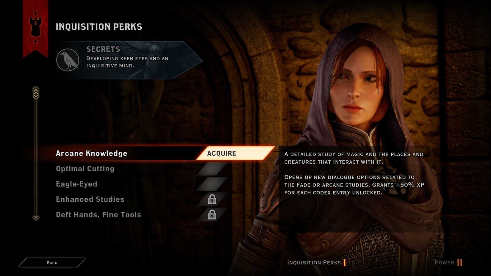A lo largo del juego, los jugadores obtendrán Influencia, lo que les permitirá desbloquear nuevas ventajas de la Inquisición. Las ventajas son un conjunto diverso de 34 bonificaciones pasivas diferentes, que van desde aumentos de XP, desde matar enemigos hasta habilidades maestras para abrir cerraduras, nuevos esquemas de equipo para la elaboración y más. La mayoría son útiles de alguna manera, pero el nivel de influencia tiene un límite de 20, lo que obliga a los jugadores a elegir sus ventajas con cuidado.