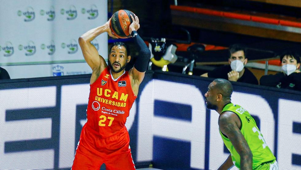El máximo anotador de la Liga Endesa lo es por algo: con 6 puntos más dio la vuelta al duelo (19-17, min. 12) para arrancar un correcalles al que UCAM respondía moviendo bien el balón para encontrar al rumano Emanuel Cate por dentro. El festival se secó pronto (25-23, min. 15) para una vuelta a la tensión, las defensas y las imprecisiones, que dejaron un escueto 30-30 al descanso.