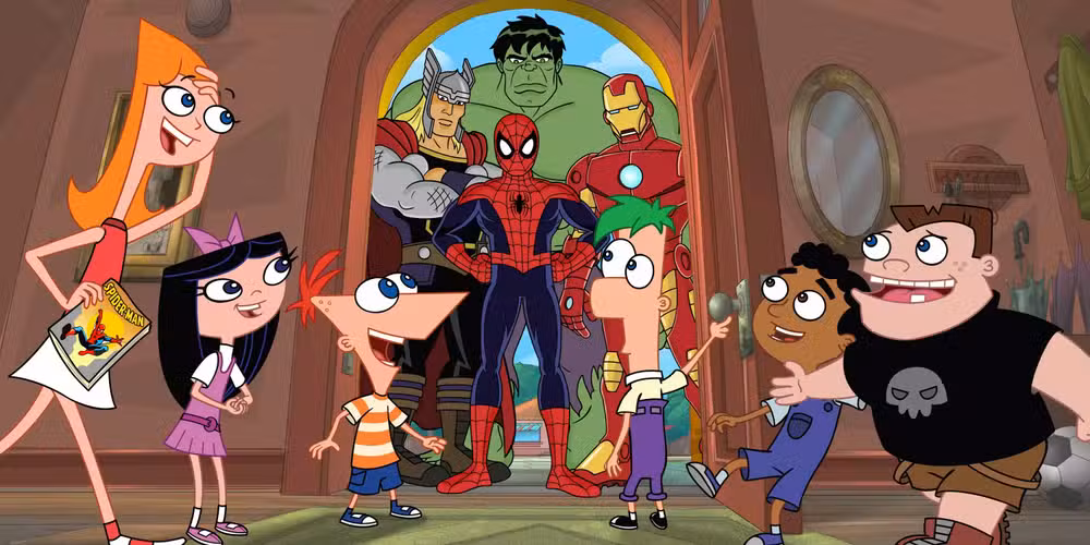 En última instancia, el episodio se convierte en una colaboración entre los íconos de Marvel y los inventivos hermanastros. Phineas y Ferb corren para restaurar los poderes de los héroes antes de que los villanos tomen el control. Es una de las pocas veces que Spider-Man ha aparecido en un musical de pura comedia y aventuras, y de alguna manera funciona perfectamente.